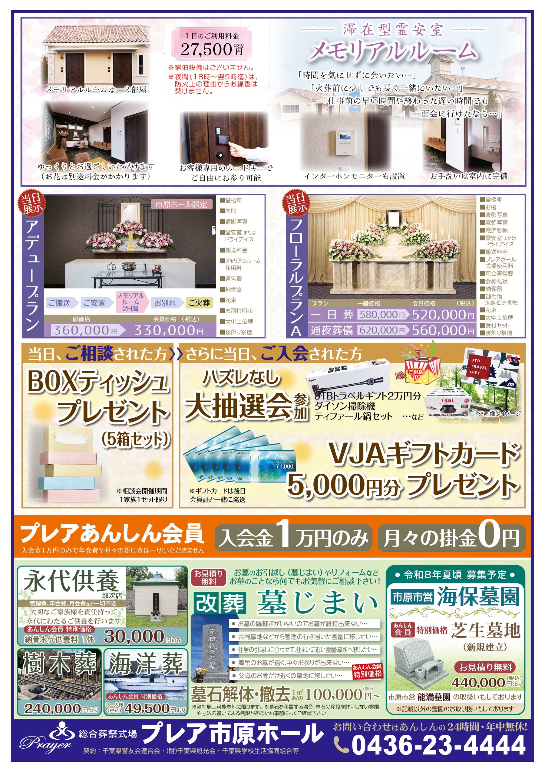 2月7日(土)、8日(日)の二日間、プレア市原ホールにてプレアホール内覧会&家族葬相談会を行います。